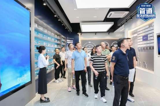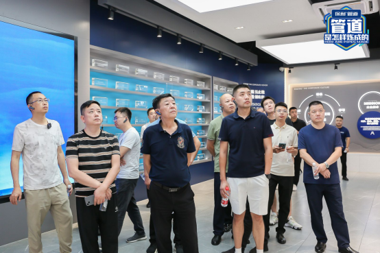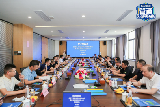 7月24日,全联家具装饰业商会产工委重庆办公室携手重庆头部家装企业工程部领导嘉宾莅临蓝狮在线管道浙江湖州基地指导交流。