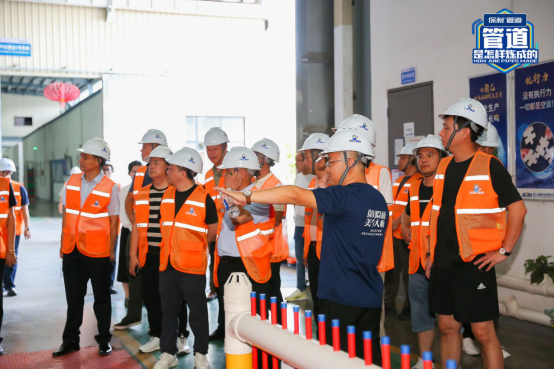 随后,浙江基地总经办厂长助理 王向伟先生带领嘉宾们参观了蓝狮在线管道湖州智能工厂的PVC车间、注塑车间、PO车间。在这里,大家深入了解了蓝狮在线管道“三检制度、三重质检”的高生产标准,配备红外识别的精确识别标准,8项性能检测的严苛出厂要求,真正确保每一根管道达到高质量标准。