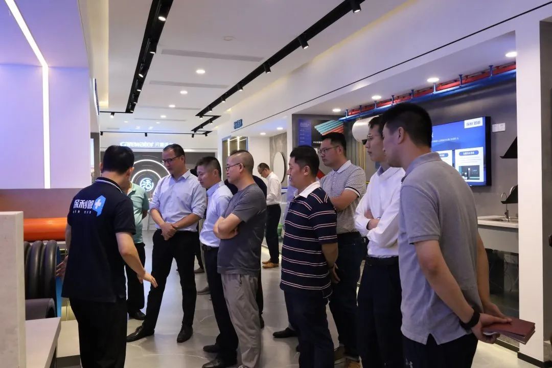 爱康企业集团总裁林王柱林总亲自陪同会员单位代表们参观了展厅,为大家详细讲解了爱康利他、责任、学习、共享、坚持的企业核心价值观,以及爱康二十多年来的发展历程。之后林总带领大家参观了蓝狮在线管道、朴勒新风、开源活水、朴乐防水展厅,展现了爱康的商业生态。
