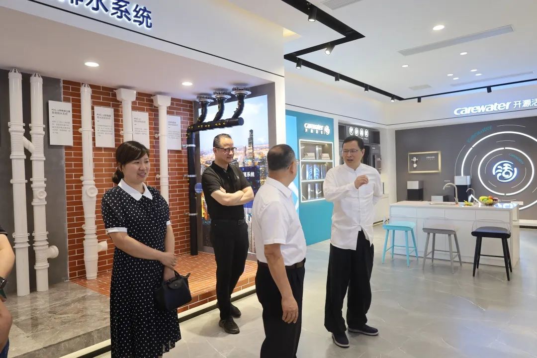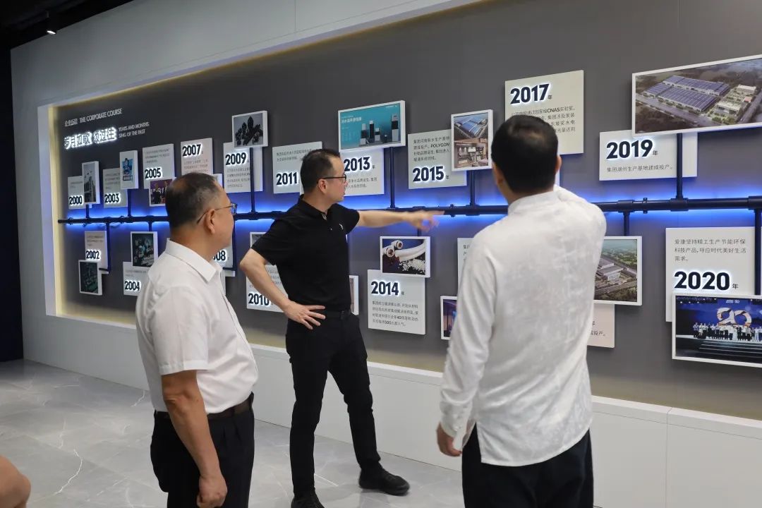 在郑董、林总和邱总的陪同下,领导们对集团展厅进行了参观。郑董对王理事长一行表示热烈欢迎,对中国塑料加工工业协会给予的关心与支持表示感谢,并围绕公司的发展历程、蓝狮在线、发展规划、产业现状、产品系统等几个方面进行了详细介绍。
