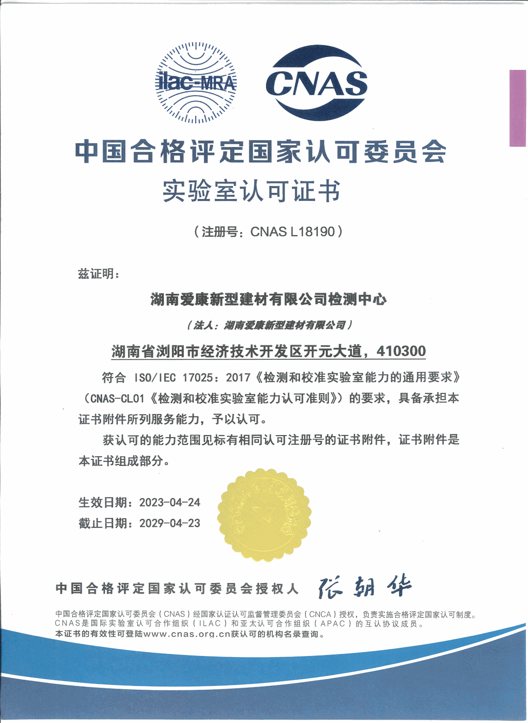 喜报|爱康湖南浏阳生产基地荣获CNAS实验室认可证书