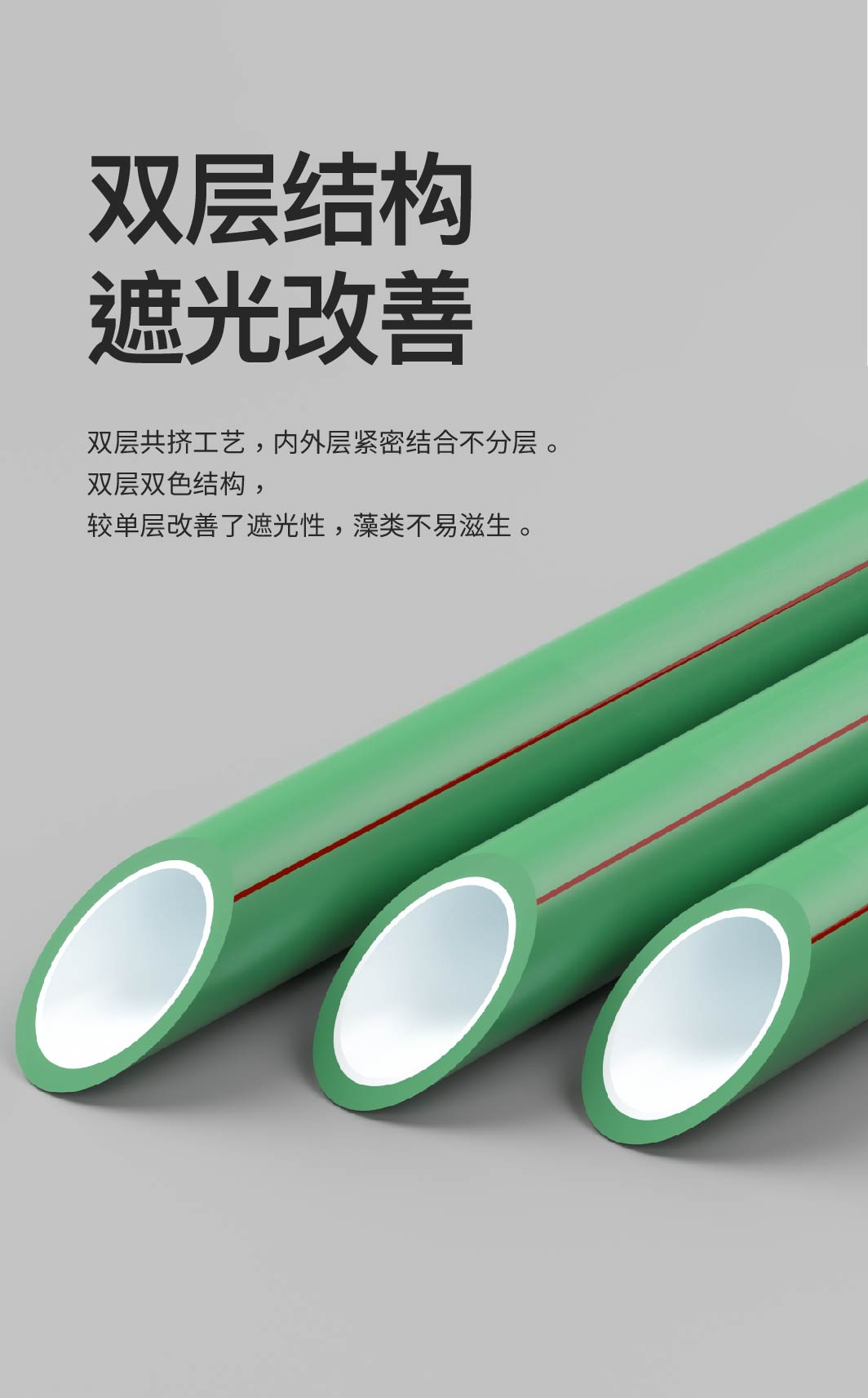 双层共挤工艺,内外层紧密结合不分层,较单层改善了遮光性,藻类不易滋生。