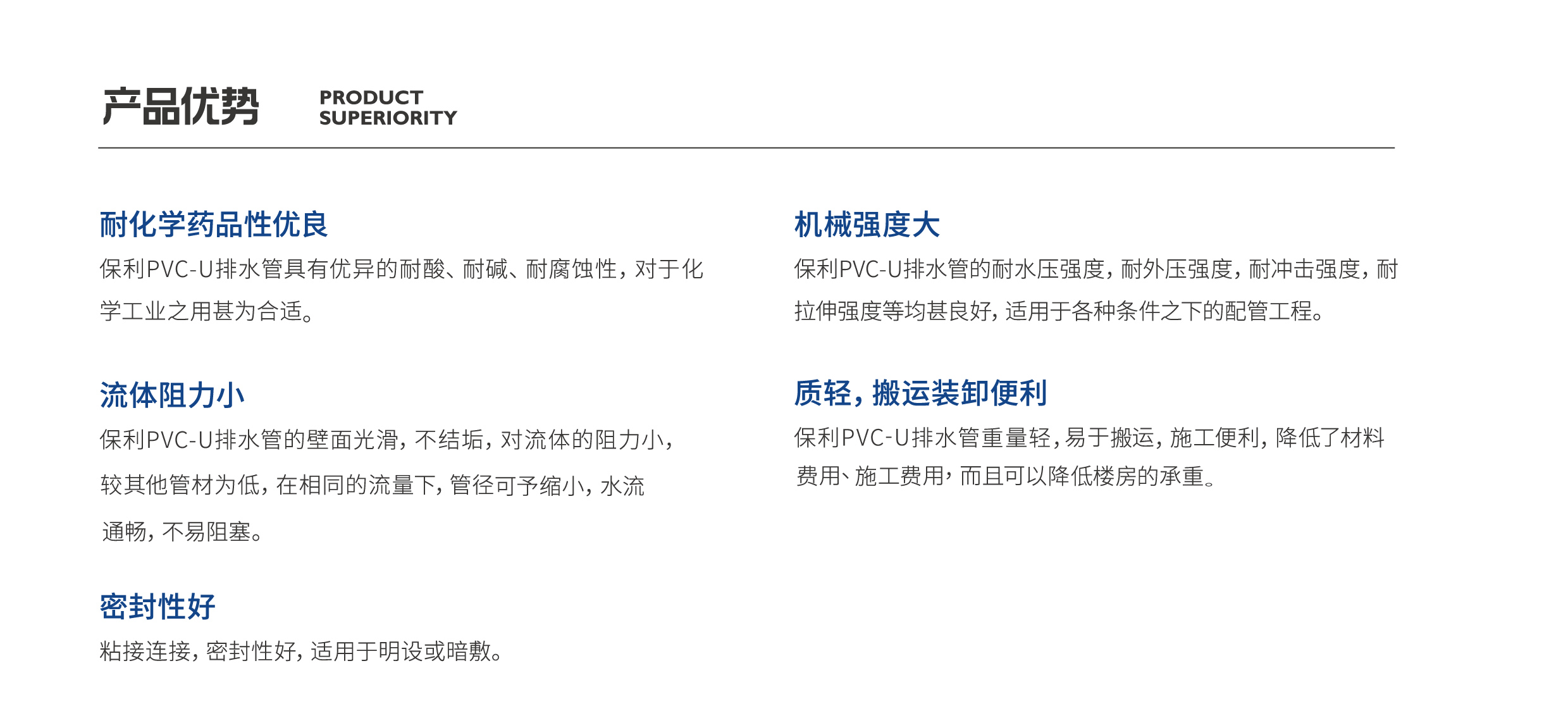 耐化学腐蚀、抗冲强度高、流体阻力小、耐老化,使用寿命长