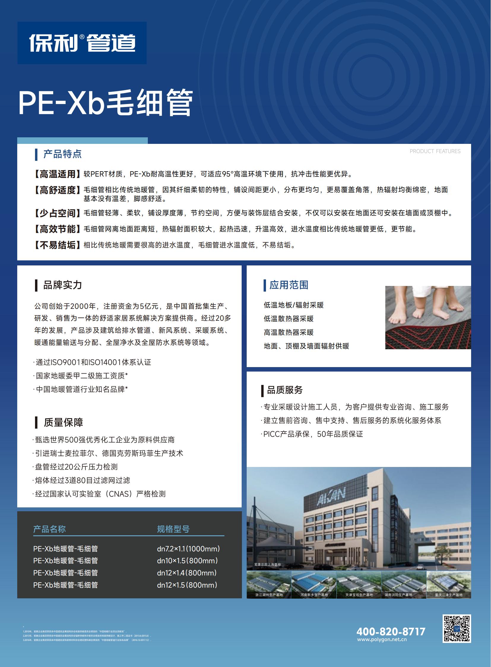 蓝狮在线管道PE-Xb毛细管,较PERT材质,PE-Xb耐高温性更好,抗冲击性能更优异,无焊接节点,一管到底防漏水,铺设间距小,分布均匀,易覆盖角落,热辐射均衡绵密,起热迅速,升温高效。